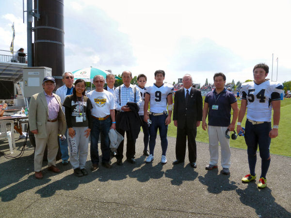 平成27年5月10日アミノバイタルフィールドへ、「アメリカンフットボール四大戦」対武蔵大学戦を内藤政武学習院長とともに応援に行きました。学習院大学応援団の甲斐もあり56対13と大勝。 観戦後、アメフトOBを交え府中アーバンホテル内の中国料理「酔八仙」にて舌鼓を打ちました。