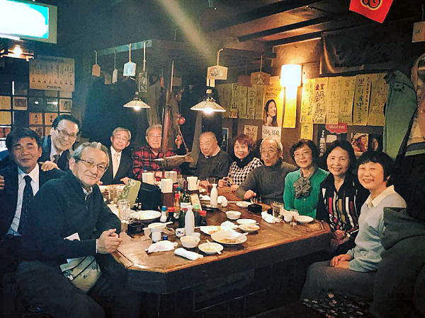 平成27年12月17日、京王線分倍河原駅前の居酒屋「つなん」にて府中桜友会の親睦会・三木会(毎月第3木曜日開催)の忘年会を開催しました。府中の会員以外も参加し、居酒屋の雰囲気も最高でした。来年もヨロシク!!