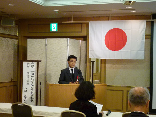 講演会では、山田吉彦先生(昭和61年経営卒、東海大学海洋学部教授)による「海から考える日本の未来」と題してご講演を賜りました。