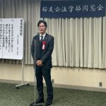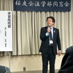講演後は3階会議室にて懇親会が開かれ、平野専務理事、石田桜友会副会長、山下法学部長、城谷常務理事よりご挨拶をいただきました。