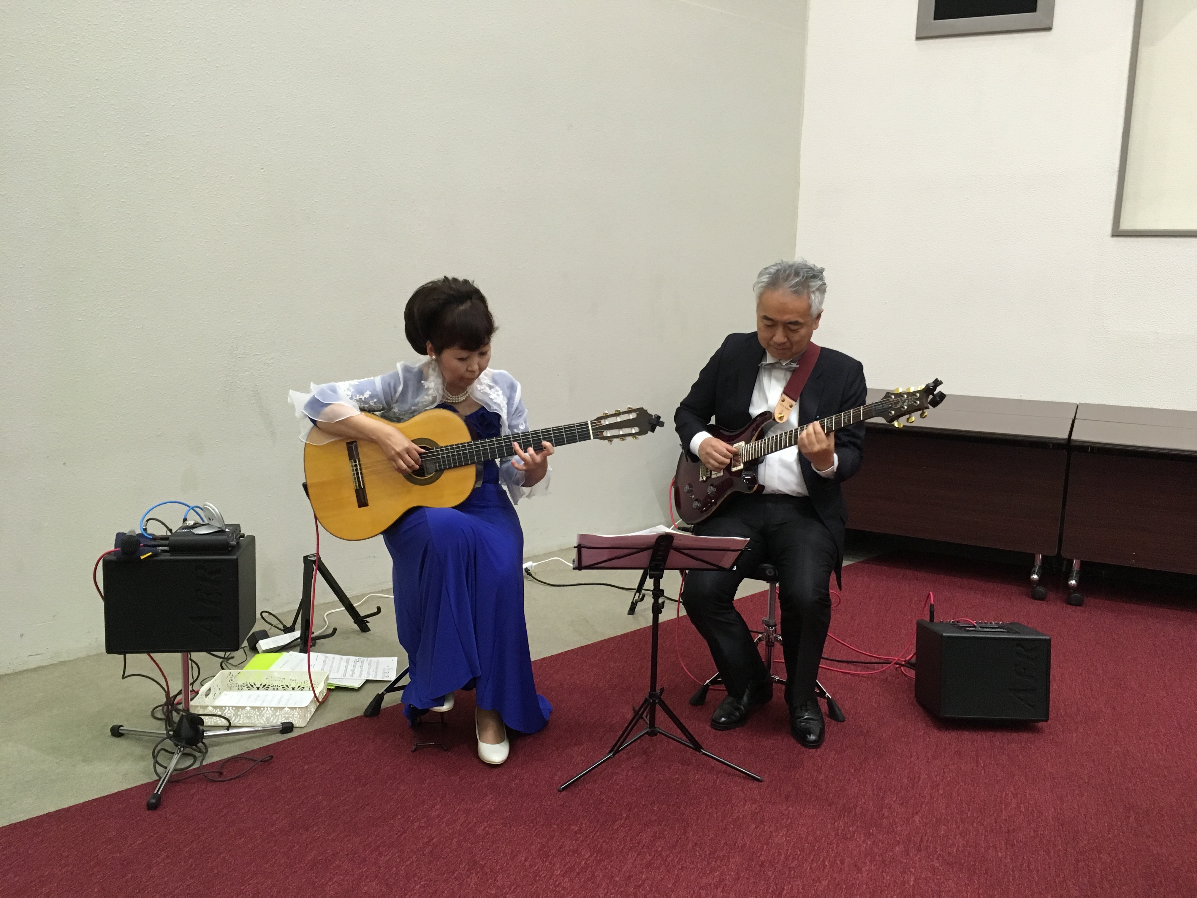 (ギターの安井美香さんは本学文学部仏文科卒)による、おしゃれで落ち着いた雰囲気の漂う