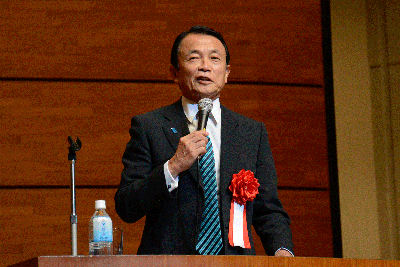 約970名のご参加者のもと、麻生太郎副総理・財務大臣をお迎えし、世界の歴史的財政政策を参考に、日本の現在の財政・経済力をご説明いただき、1時間15分の熱いご講演を賜りました。
