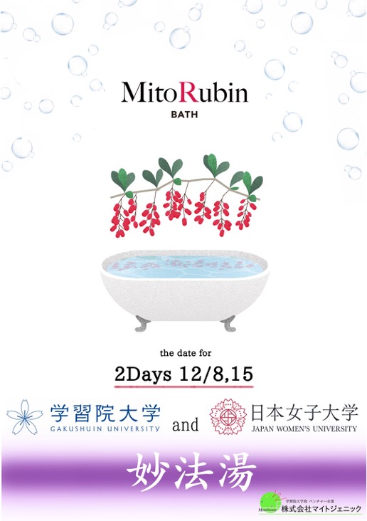 (注)マイトルビン入浴剤を活用した地域銭湯とのコラボイベント「マイトルビンの湯」。大学の研究成果の社会還元の取り組みとして、都内銭湯では人気の変わり湯となっているようです。都内29銭湯での同時開催を皮切りに2025年からは京都・大阪・名古屋。