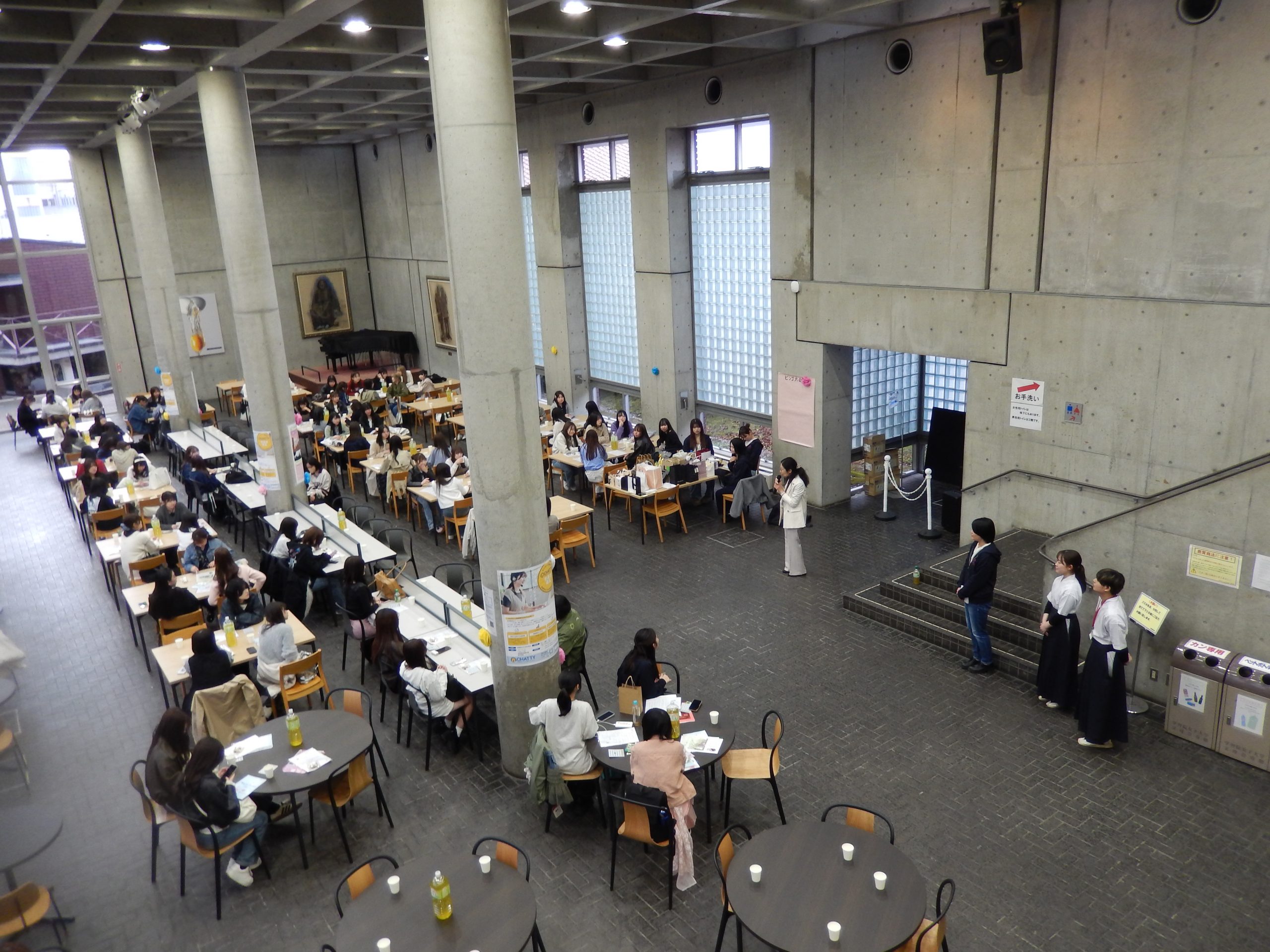 令和7年4月5日、学習院女子大学の新入生歓迎イベント「雅祭」が開催されました。互敬会館1階メインホールにて約 100 名の新入生が出席し、和やかな雰囲気の中でウェルカムパーティが行われました。