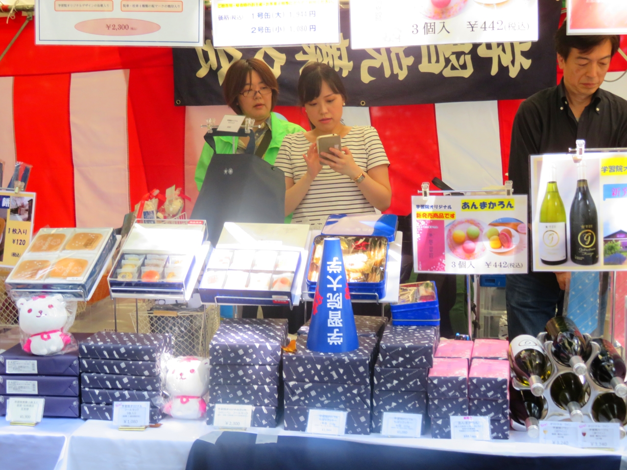 (株)学習院蓁々会の協力を得て学習院グッズの販売、そして大学入試パンフレットの配布を行いました。